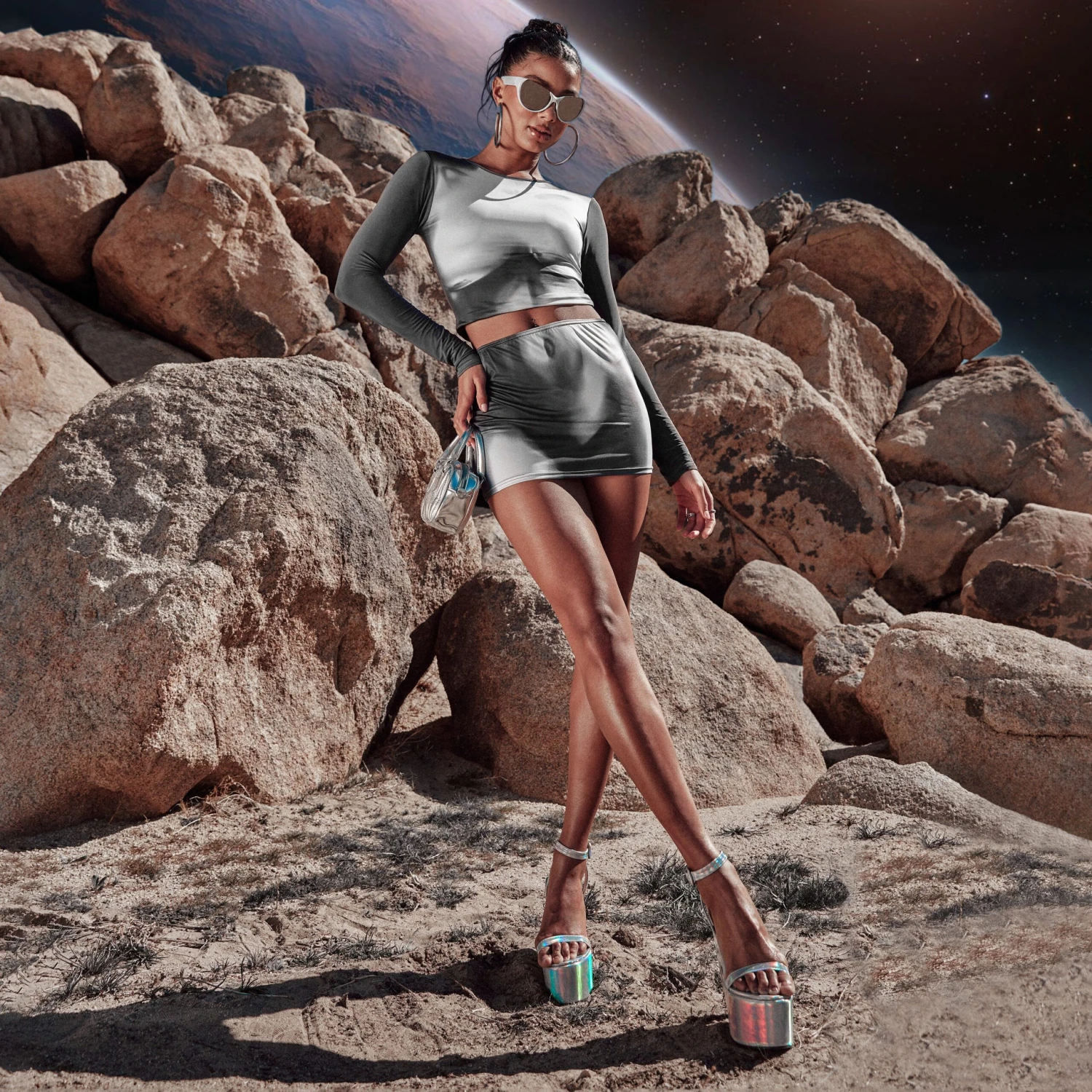 This skirt is sure to earn you some serious style points doll. Featuring a grey slinky material, body print detailing and a mini length. Team this with he matching top and heels for a look that’s sure to get you noticed.