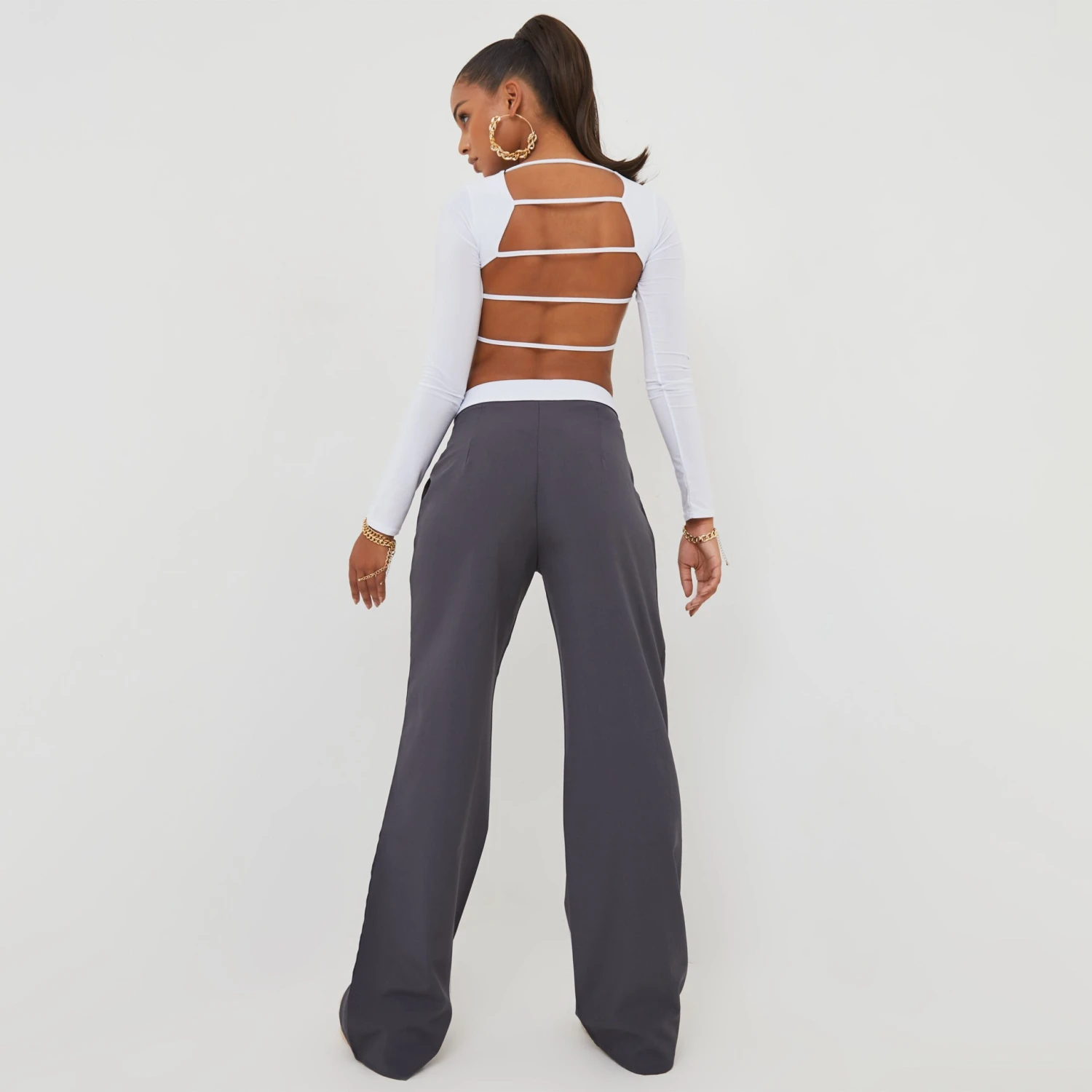 Be the first to review “EGO Fold Over High Waist Wide Leg Trousers In Charcoal” Cancel reply