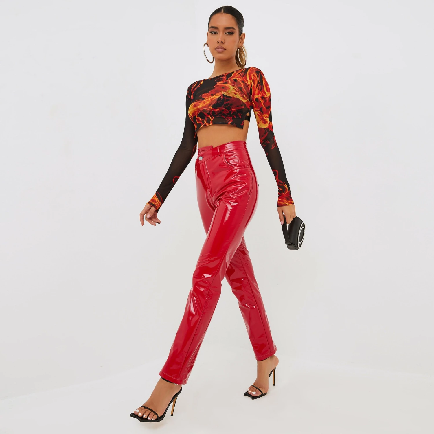 Make the crowd stop and stare in these bottoms doll. Featuring a red PU material, an asymmetric waist and a straight leg fit. Team these with a printed crop top and heels for a look we’re obsessed with.