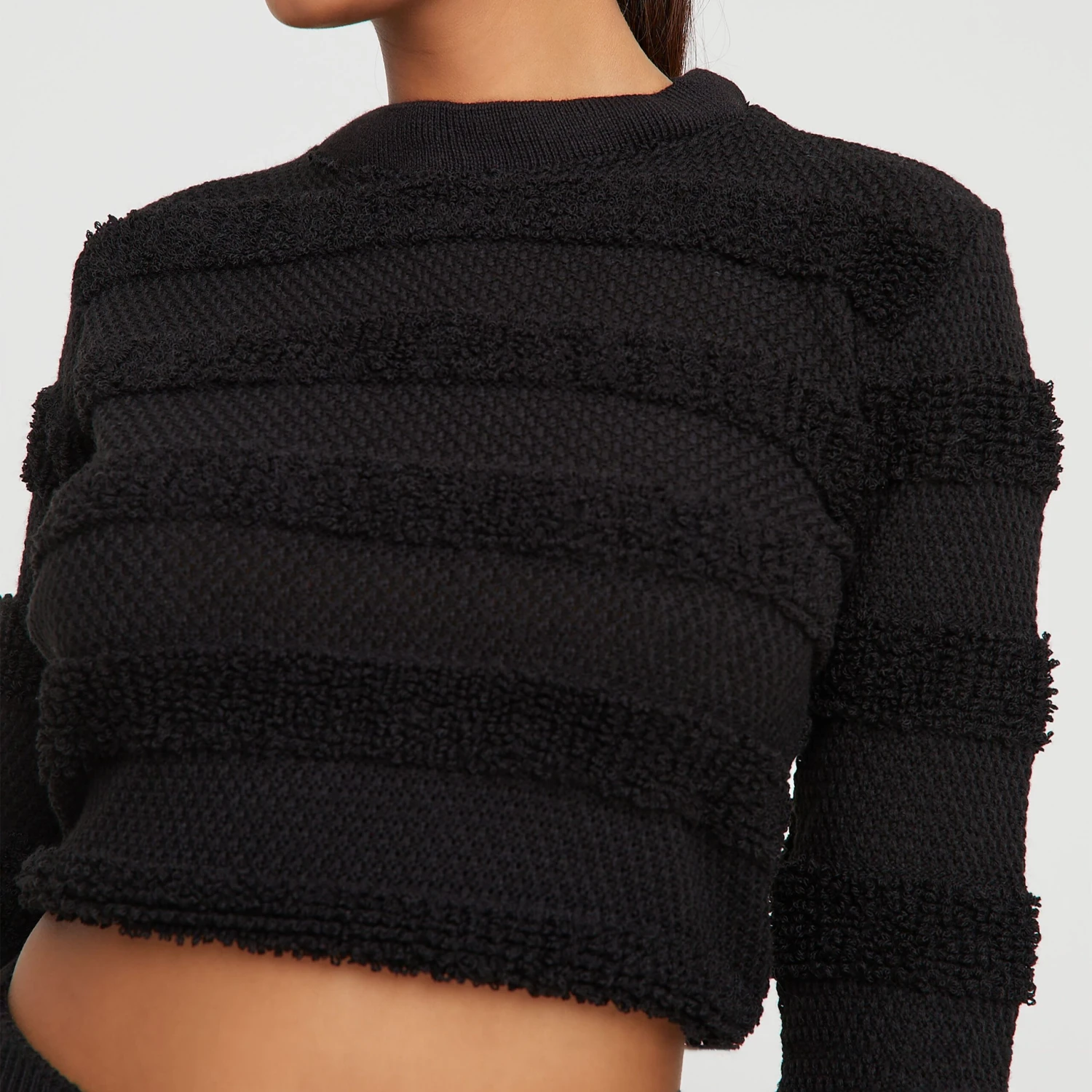 EGO High Neck Long Sleeve Panelled Detail Crop Top In Black Bubble Texture