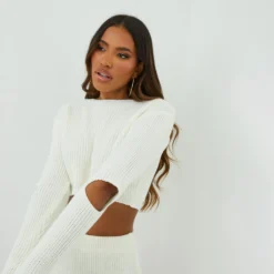 EGO Long Sleeve Cross Detail Oversized Jumper In Black Crochet