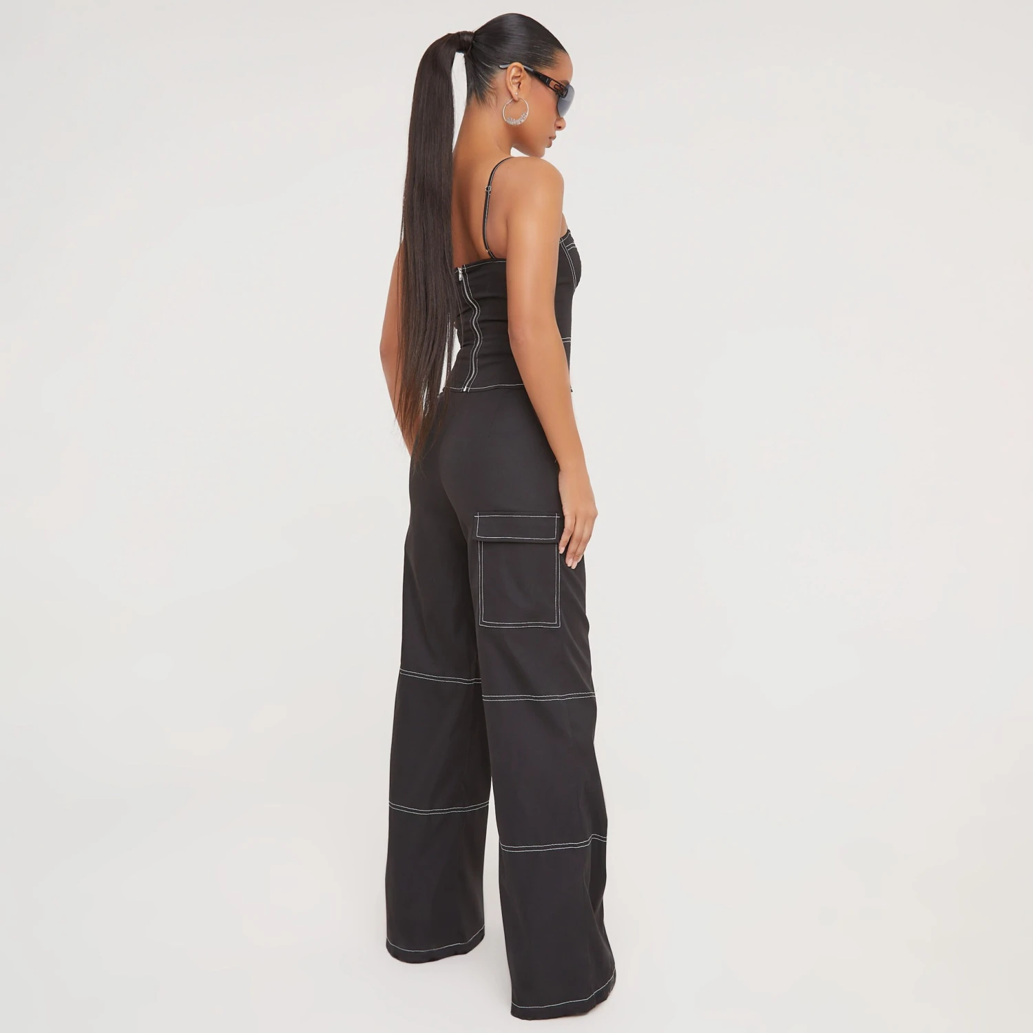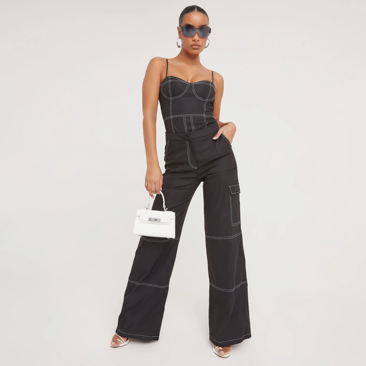 Hit refresh on your new season wardrobe with these cargos doll. Featuring a black material, contrast stitch detailing and a wide leg design. Team these with the matching corset and heels for a cargos and a nice top look we love.