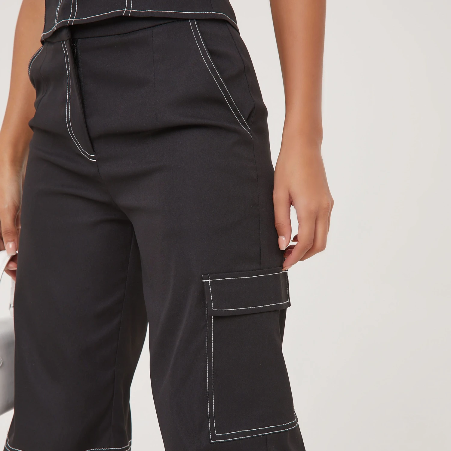 Be the first to review “EGO High Waist Contrast Stitch Detail Wide Leg Trousers In Black” Cancel reply