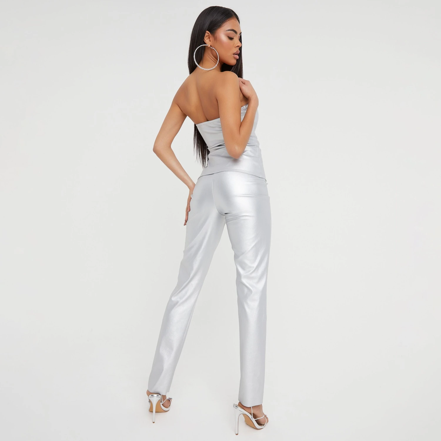 These bottoms are sure to get you noticed doll. Featuring a silver faux leather material, a seam front design and a straight leg fit. Team these with the matching hue corset and heels for a look we love.