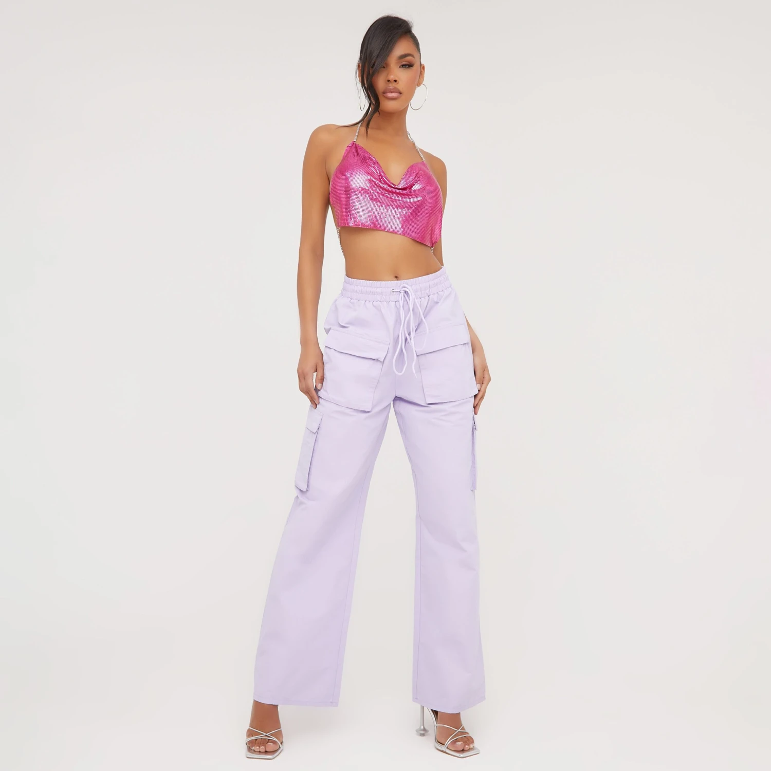 Be the first to review “EGO High Waist Pocket Detail Wide Leg Cargo Trousers In Lilac” Cancel reply