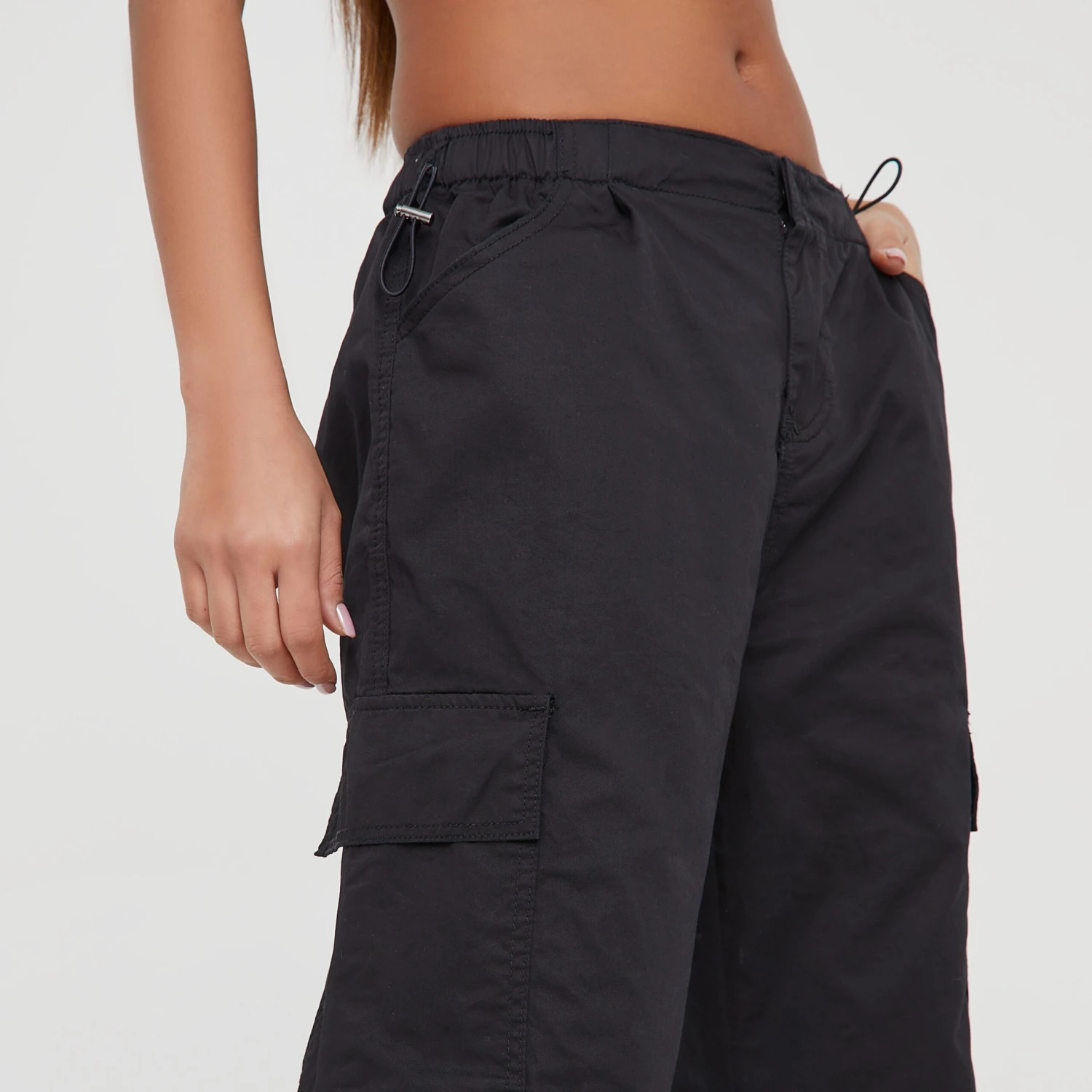 EGO High Waist Pocket Toggle Detail Cargo Trousers In Black