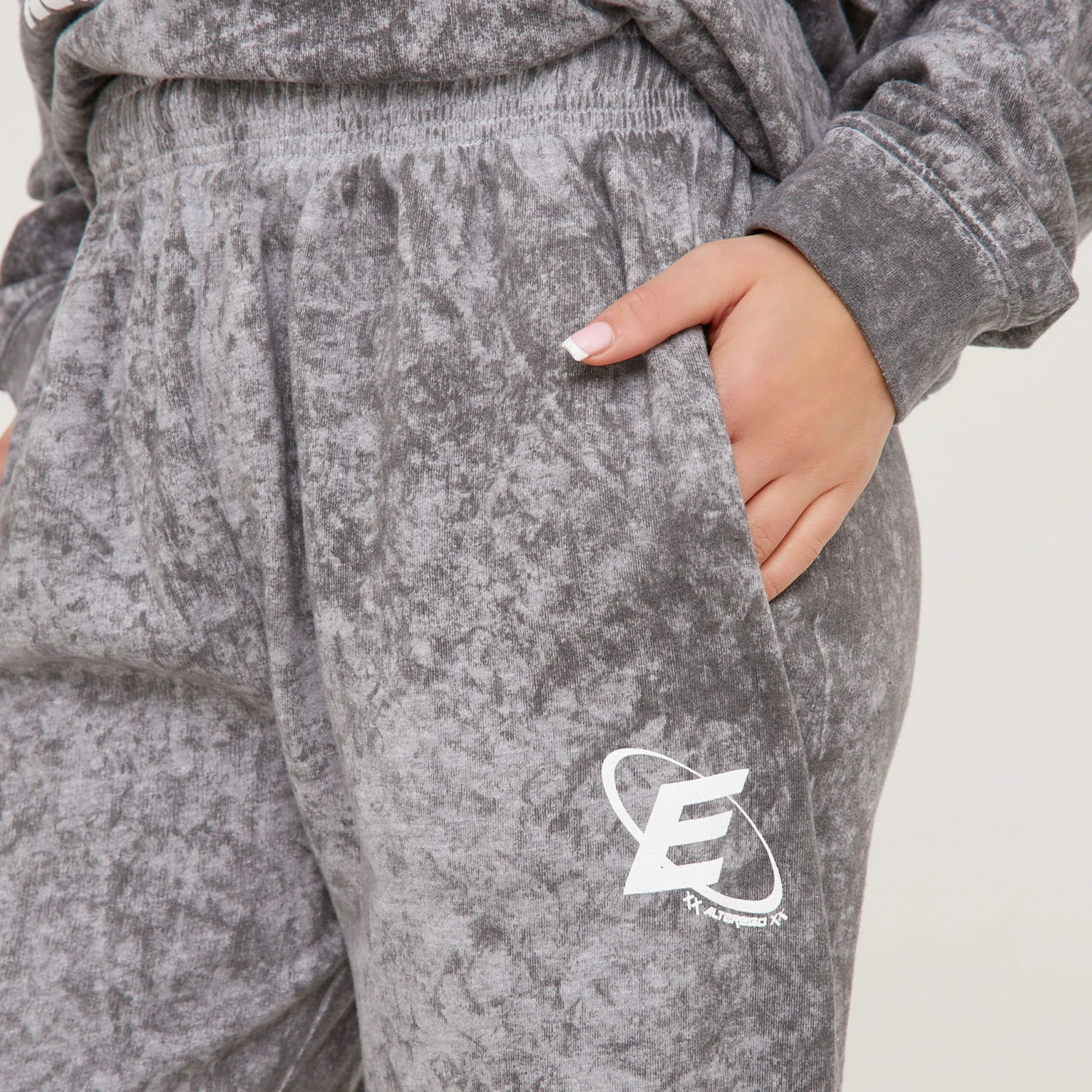EGO High Waist Space Graphic Oversized Cuffed Hem Joggers In Grey Acid Wash