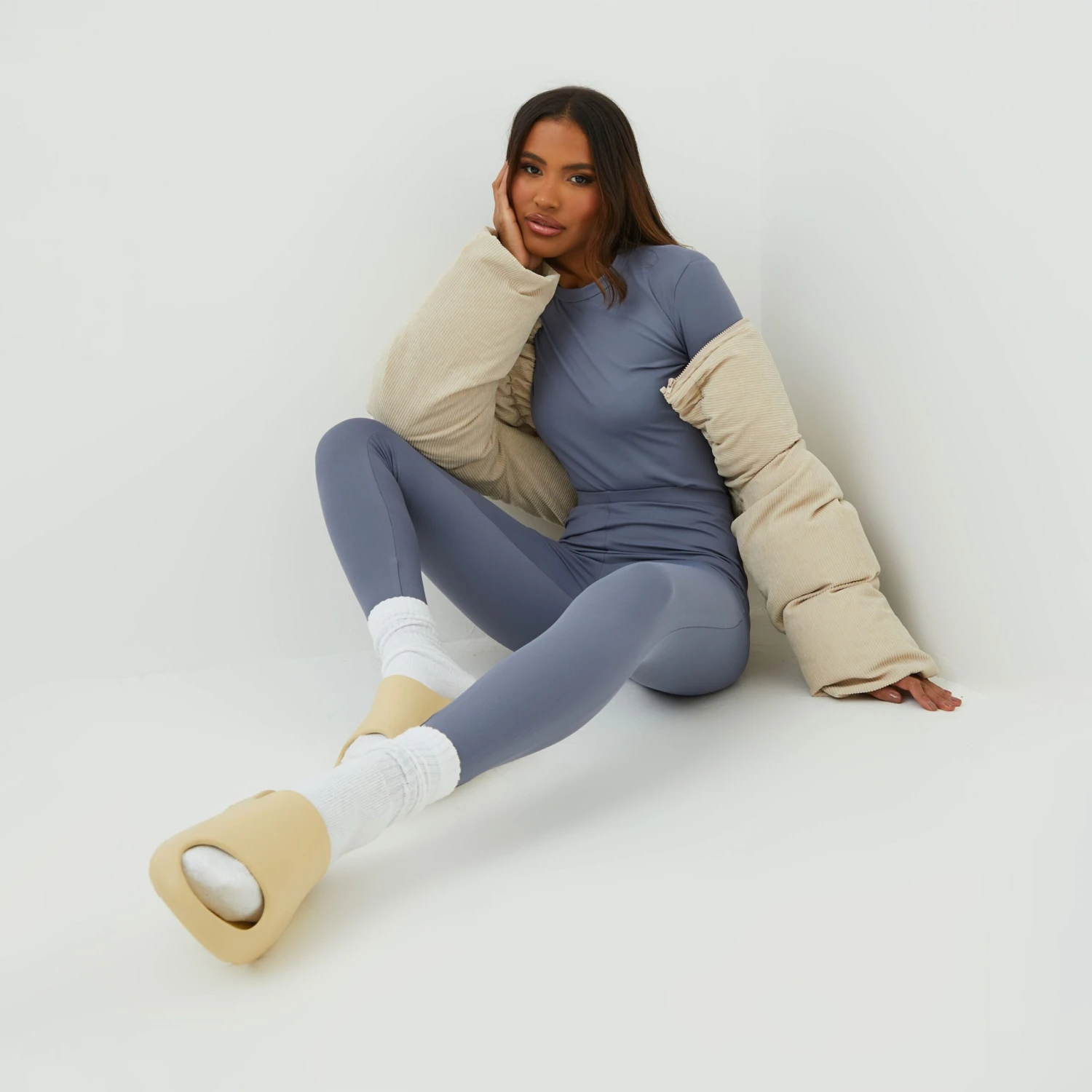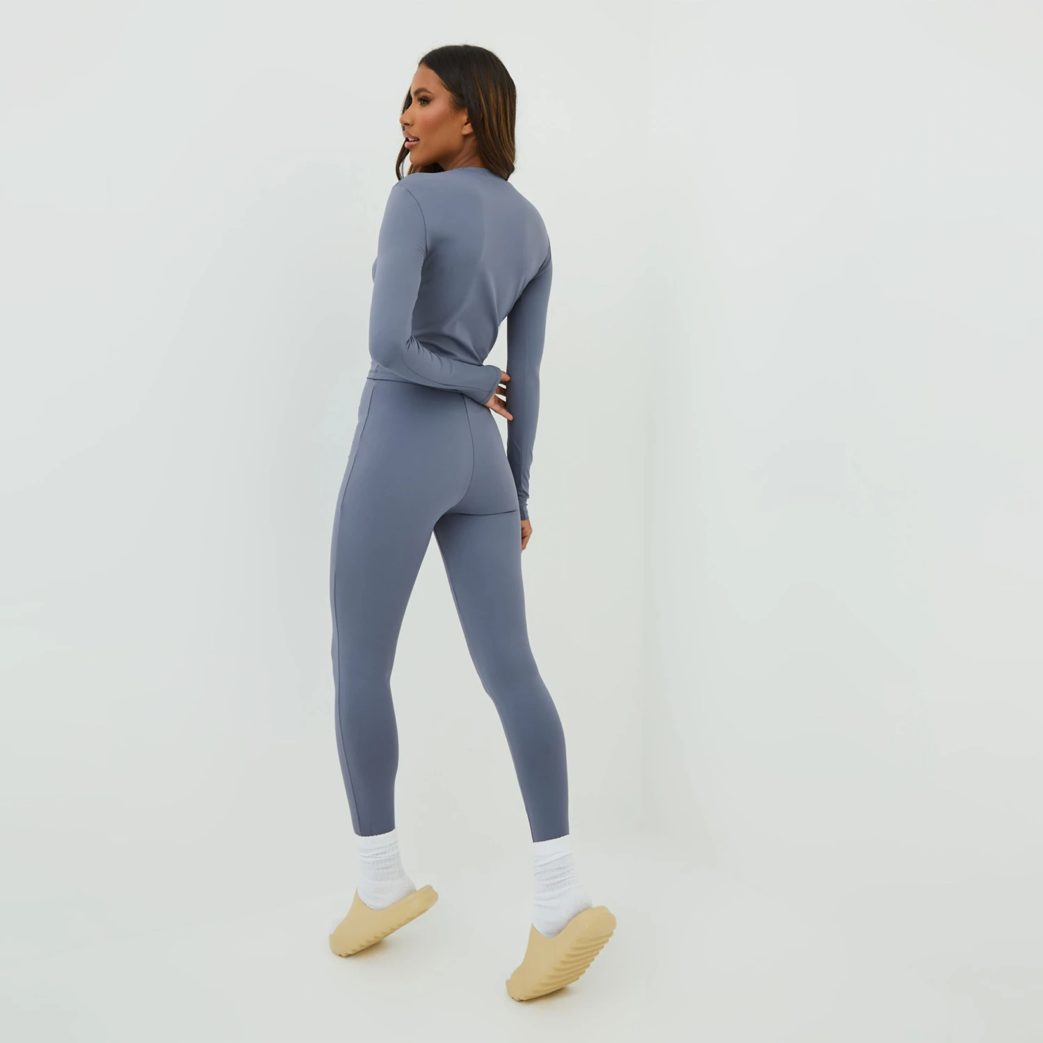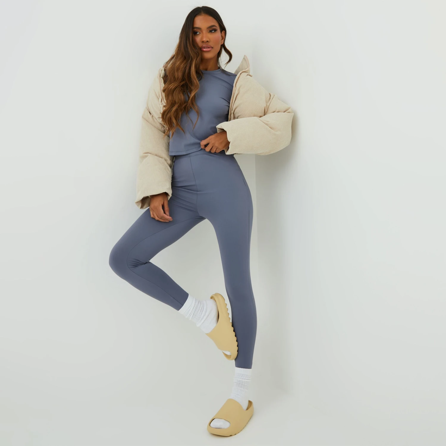 Your off duty wardrobe just got an upgrade with these leggings. Featuring a charcoal stretch material, a high waist and a comfy fit. Team these with the matching top and slides for comfy vibe we love.