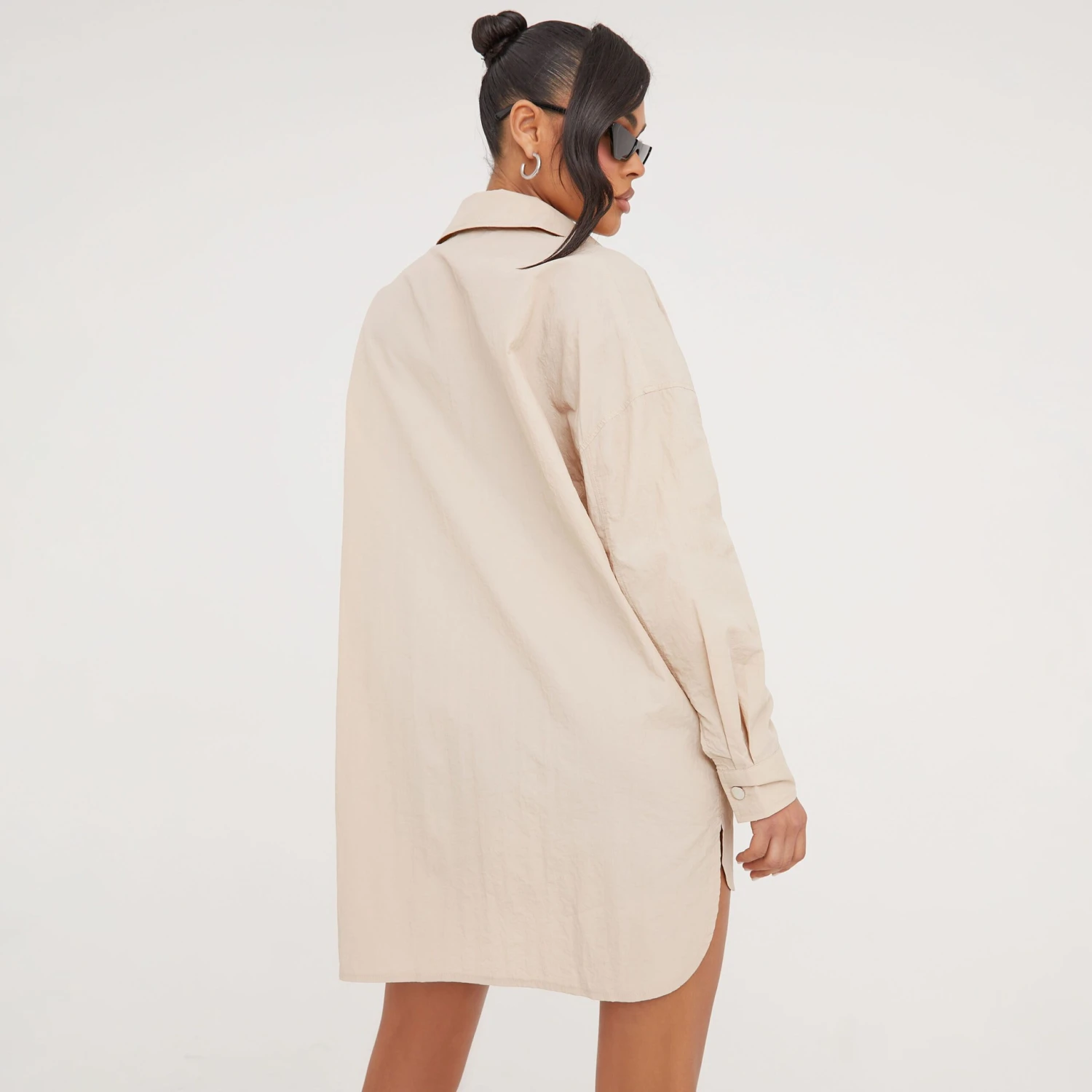 Be the first to review “EGO Long Sleeve Button Front Oversized Parachute Shirt Dress In Stone” Cancel reply