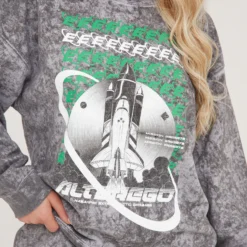 EGO Long Sleeve Space Graphic Oversized Sweatshirt In Grey Acid Wash