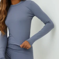 EGO Long Sleeve Square Neck Cut Out Detail Crop Top In Beige