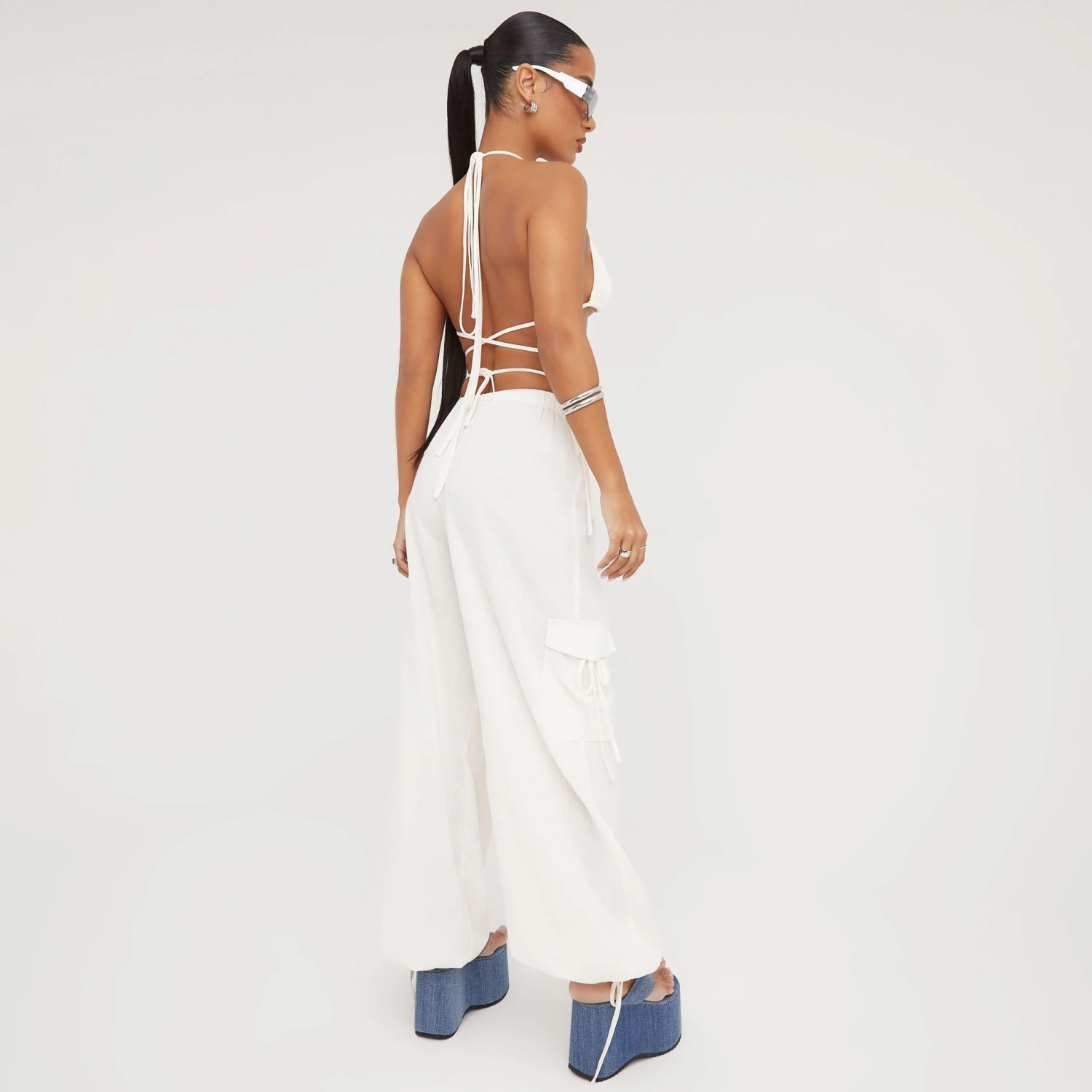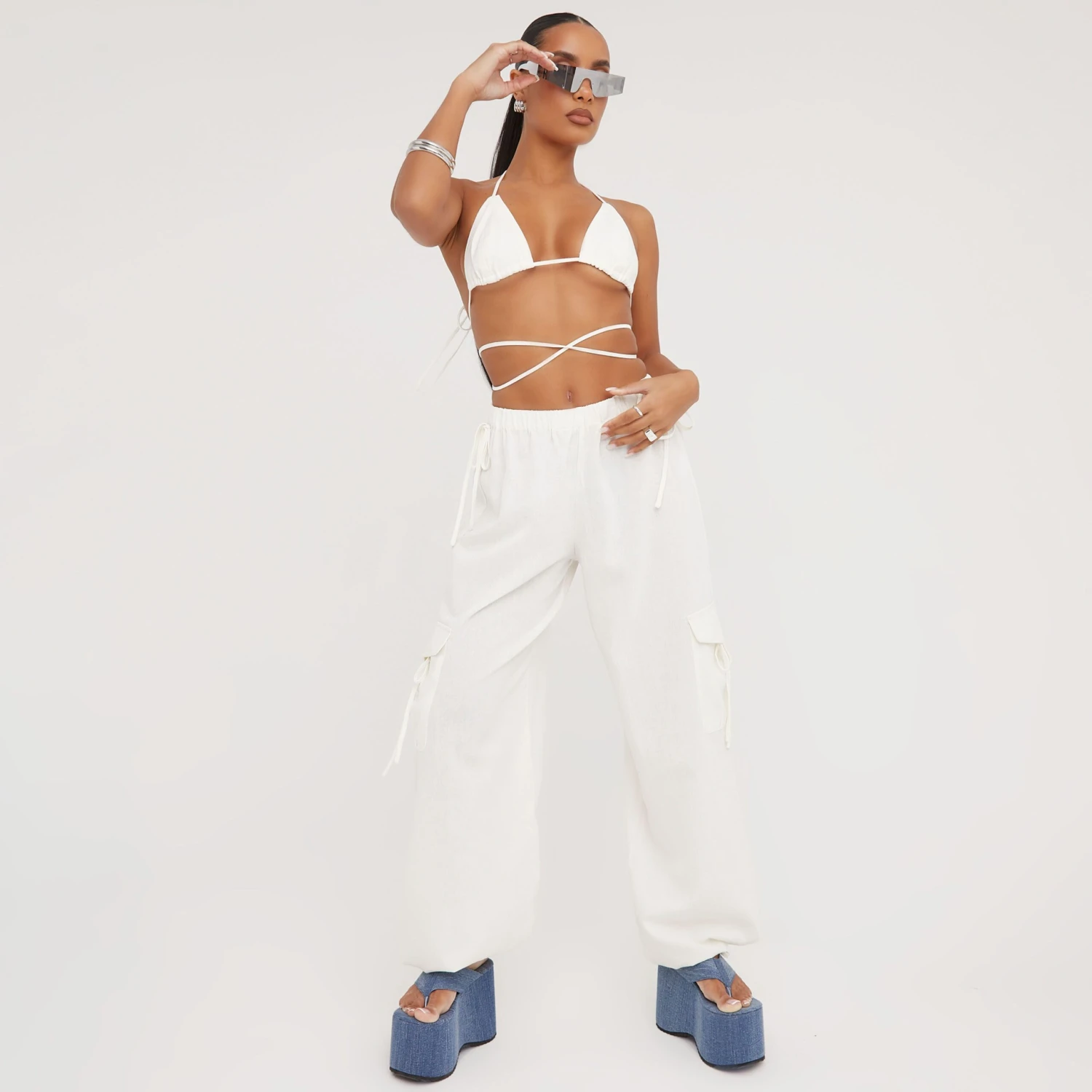 Be the first to review “EGO Low Rise Strappy Detail Straight Leg Cargo Trousers In Cream Linen” Cancel reply