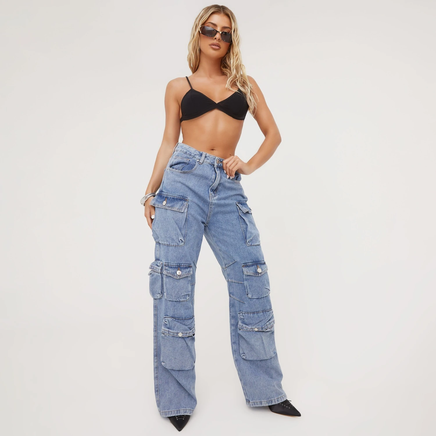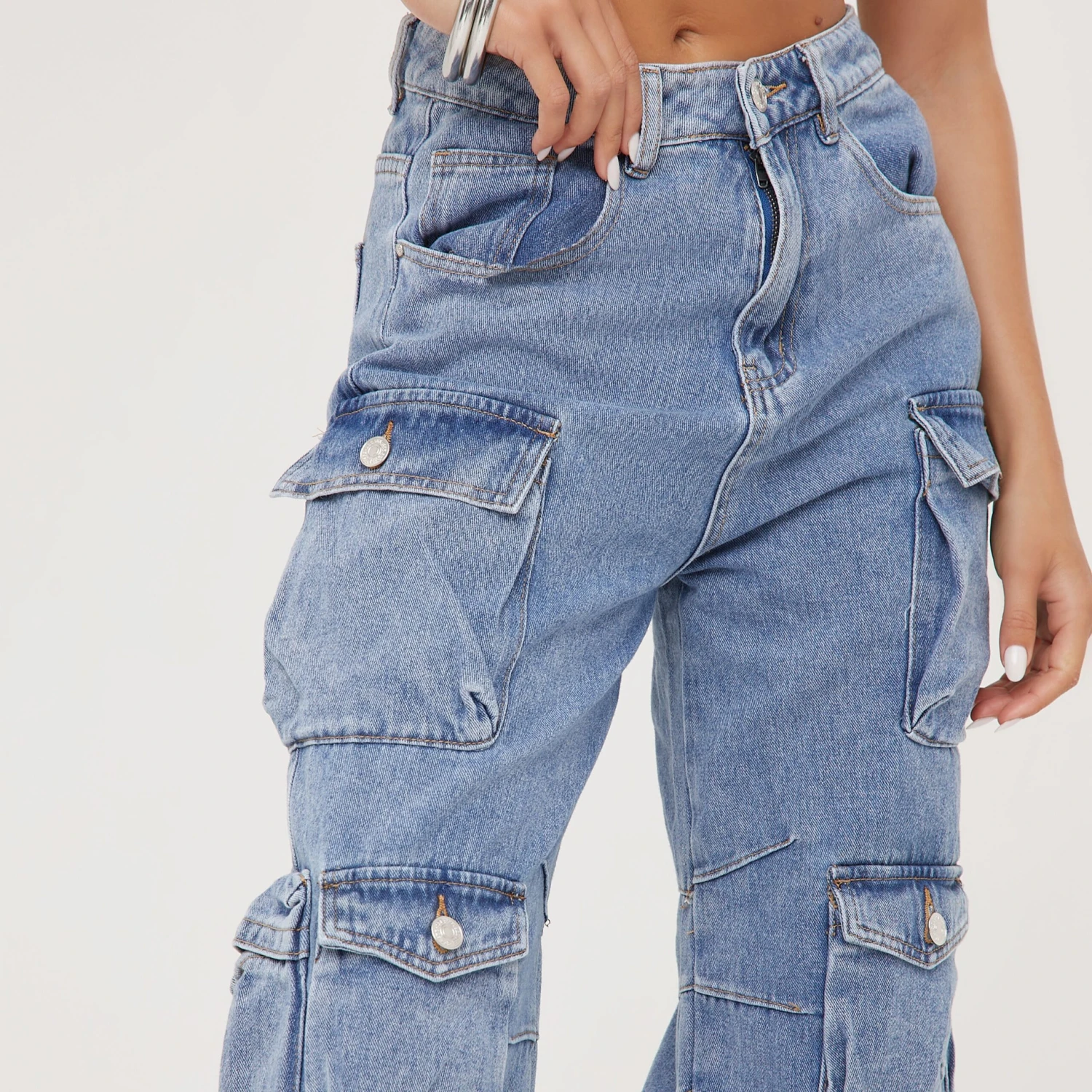 EGO Mid Rise Multi Pocket Detail Straight Leg Cargo Denim Jeans