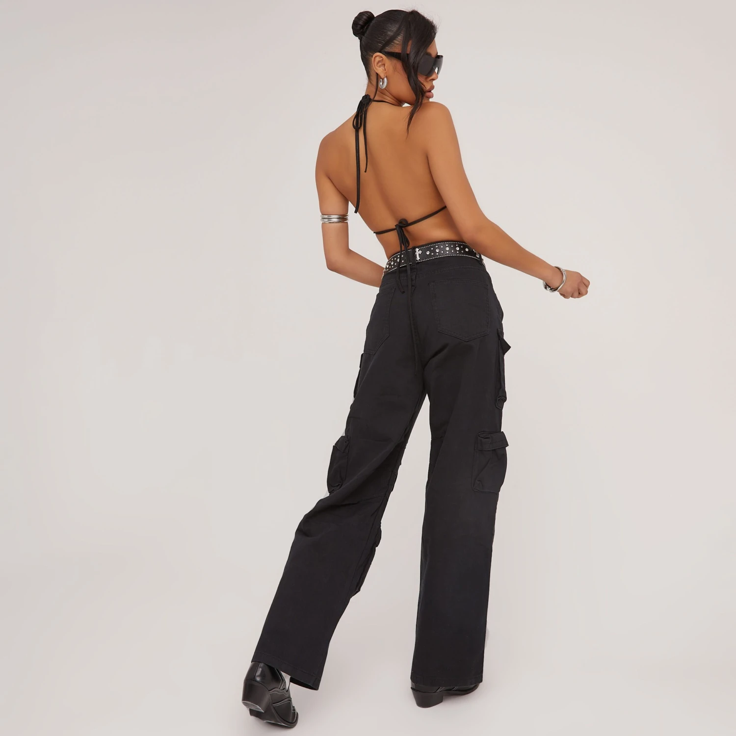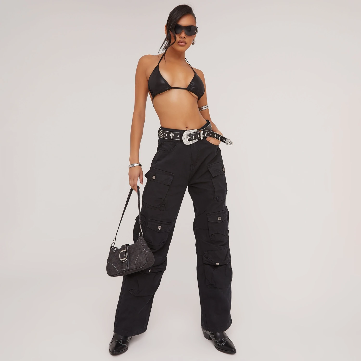 Girl, grunge down your wardrobe with these must have cargos. Featuring a black denim material, with multi pocket detailing, a straight leg, mid rise waistline and a cargo design. We are obsessed.