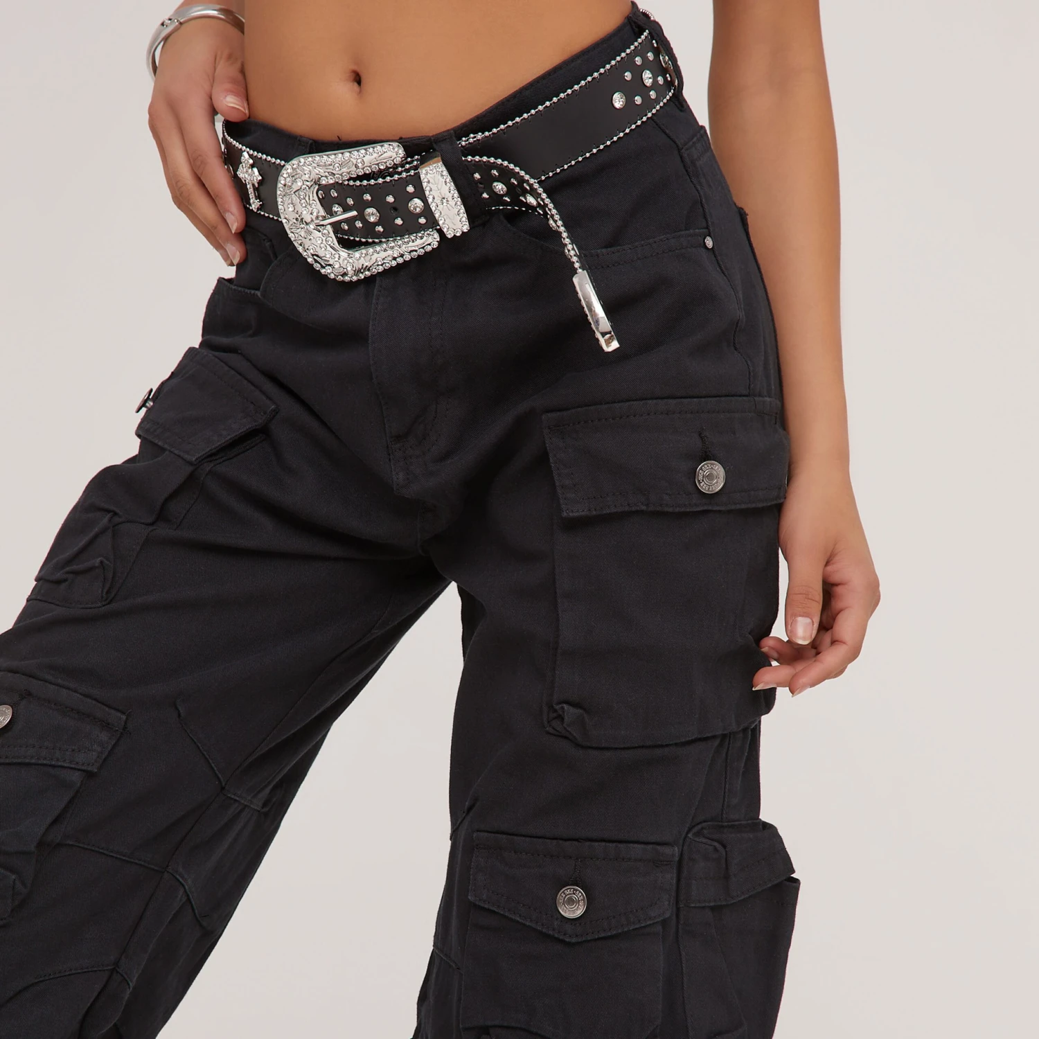 Be the first to review “EGO Mid Rise Multi Pocket Detail Straight Leg Cargos In Black Denim” Cancel reply
