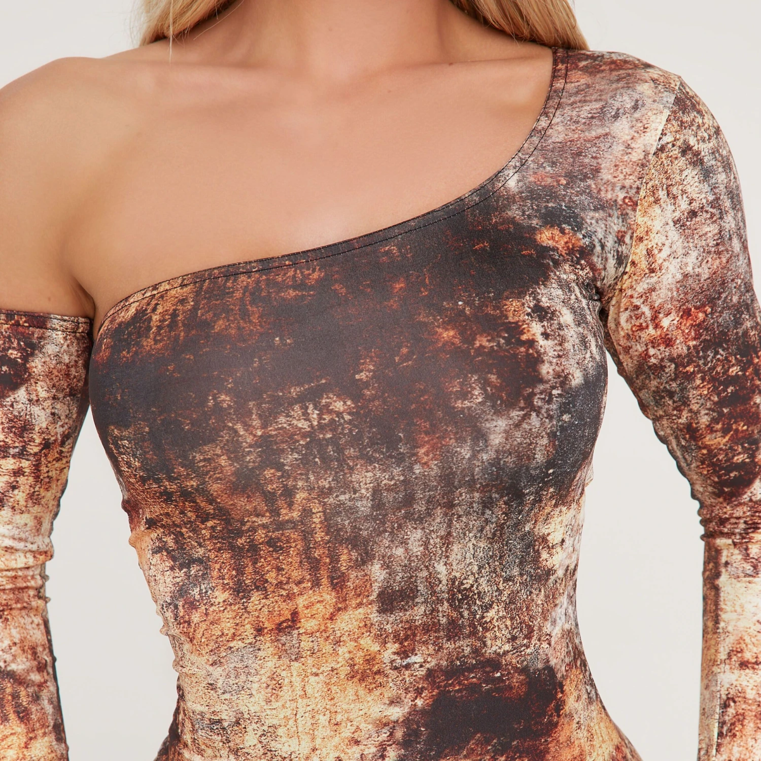 Be the first to review “EGO One Shoulder Mini Bodycon Dress With Sleeve In Multi Acid Print Slinky” Cancel reply