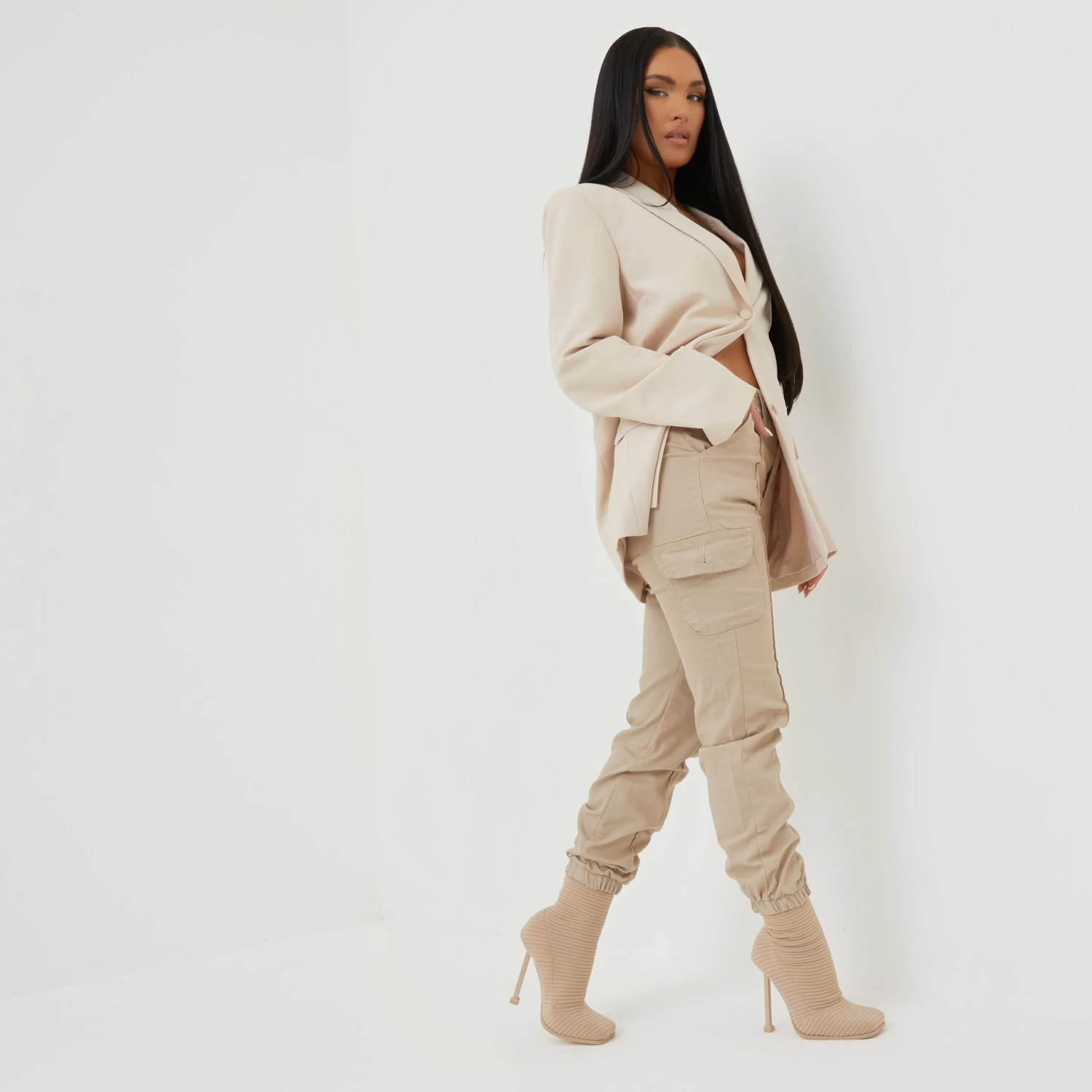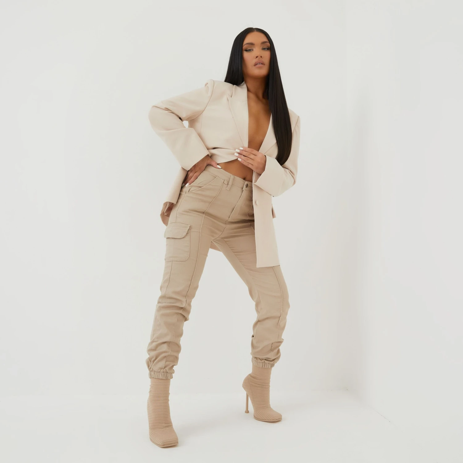 EGO Pocket Detail Cargo Trousers In Stone Nude
