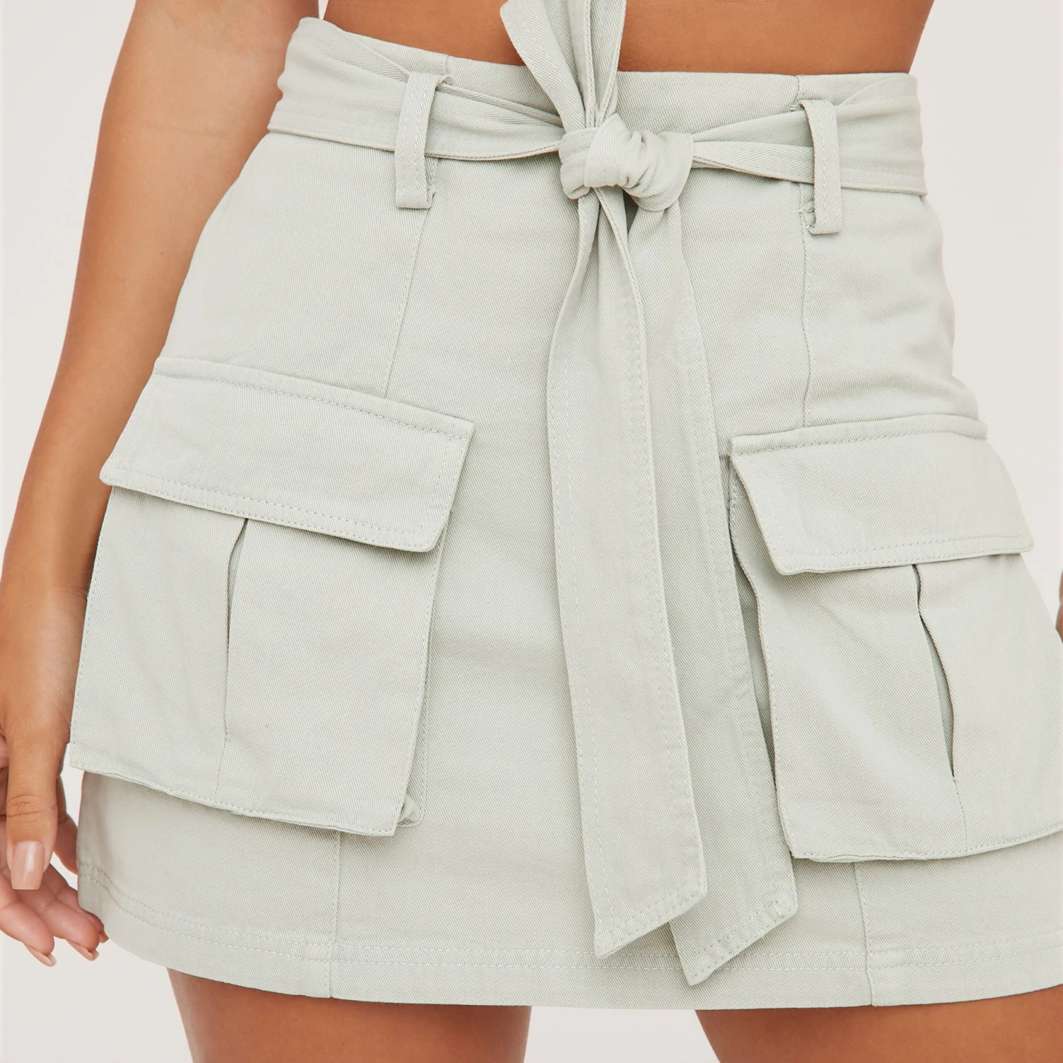 Be the first to review “EGO Tie Waist Detail Pocket Cargo Mini Skirt In Mint Green” Cancel reply