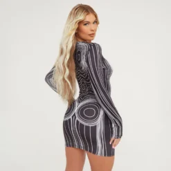 EGO Long Sleeve Contrast Body Print Mini Bodycon Dress In Black