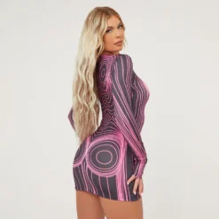EGO Long Sleeve Contrast Body Print Mini Bodycon Dress In Pink