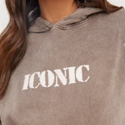 EGO Oversized ‘Iconic’ Slogan Printed Hoodie In Acid Wash Mink
