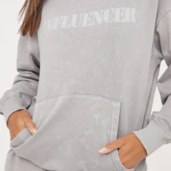 EGO Long Sleeve Space Graphic Oversized Sweatshirt In Grey Acid Wash