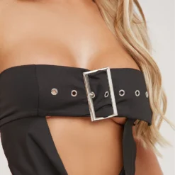 EGO Bardot Long Sleeve Ruched Detail Mini Bodycon Dress In White Mesh