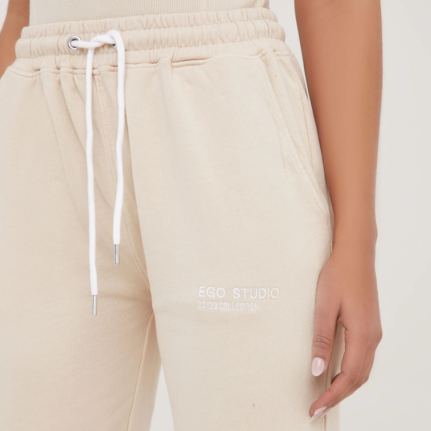 Be the first to review “Tie Waist ‘Ego Studio’ Oversized Cuffed Hem Joggers In Cream” Cancel reply